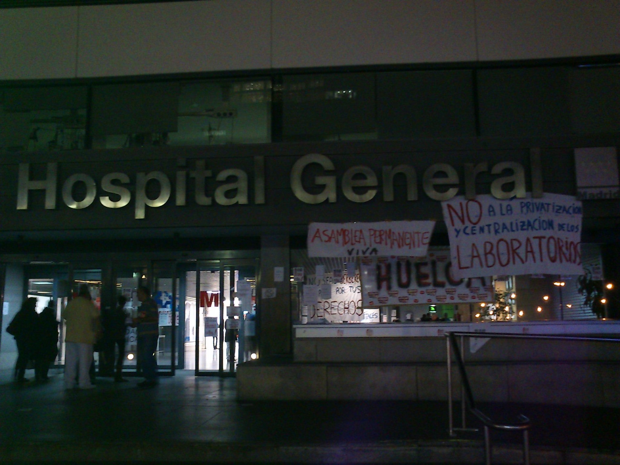 También en los hospitales públicos han secundado la huelga, especialmente en el Hospital Carlos III, que llevan unas jornadas encerrados en el centro hospitalario por la defensa de la sanidad pública. En el Hospital Ramon y Cajal también ha habido piquetes en el que impedían la salida de coches de personal del parking. Pero los momentos más tensos han llegado en el hospital La Paz, donde otro grupo de piquetes retuvieron un hígado que iba a ser transplantado.